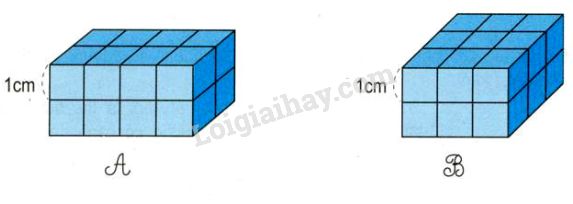 Quan sát hình vẽ để tính số hình lập phương nhỏ của mỗi hình. Hình nào có nhiều hình lập phương nhỏ hơn thì có thể tích lớn hơn.