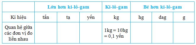 b) Viết cho đầy đủ bảng đơn vị đo khối lượng sau: