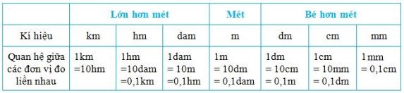 - Đơn vị bé bằng \(\dfrac{1}{10}\) đơn vị lớn hơn tiếp liền.