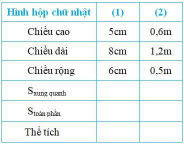 - Hình hộp chữ nhật: