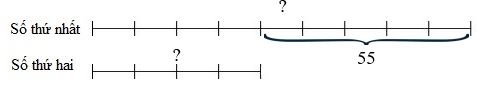 b) Hiệu của hai số là 55. Số thứ nhất bằng \( \dfrac {9}{4}\) số thứ hai. Tìm hai số đó.