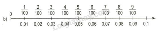 Đọc các phân số thập phân và số thập phân trên các vạch của tia số: