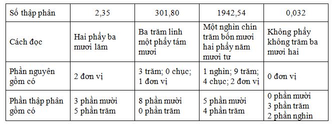 Muốn đọc một số thập phân, trước hết đọc phần nguyên, đọc dấu "phẩy", sau đó đọc phần thập phân.