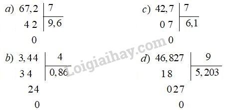 c) \(42,7 : 7\); d) \(46,827 : 9\)