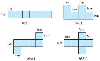 - Với hình 2, khi ta gấp dãy 4 hình vuông ở dưới thành 4 mặt xung quanh thì 2 hình vuông ở trên sẽ đè lên nhau, không tạo thành một mặt đáy trên và một mặt đáy dưới được. Do đó không thể gấp hình 2 thành một hình lập phương.