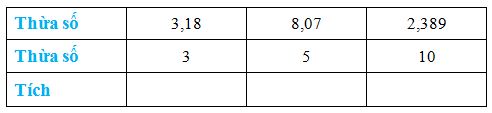 Áp dụng công thức: Tích \(=\) thừa số \(\times\) thừa số.