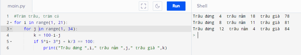 Lập trình giải bài toán dân gian TRĂM TRÂU TRĂM CỎ.