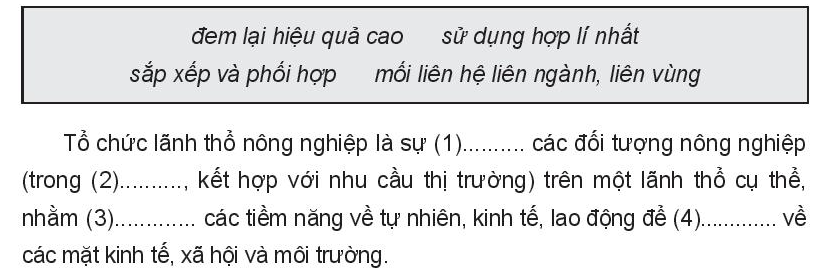 Đọc kĩ đoạn văn, đọc lại kiến thức về khái niệm tổ chức lãnh thổ nông nghiệp để điền các cụm thích hợp cho trước từ vào chỗ chấm.