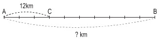 Biết \( \dfrac{3}{10}\) quãng đường AB dài \(12km\). Hỏi quãng đường AB dài bao nhiêu ki-lô-mét?