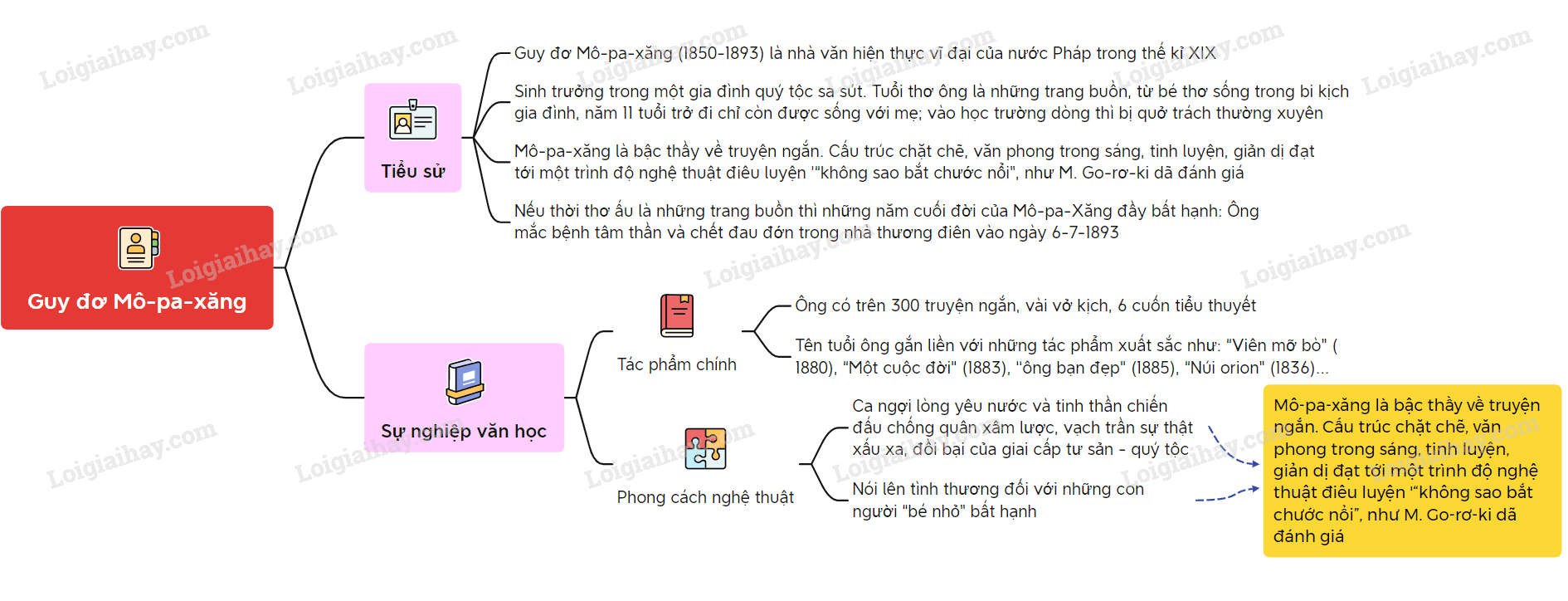 Sơ đồ tư duy về nhà văn Guy đơ Mô-pa-xăng: