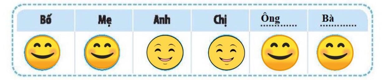 - Vẽ biểu tượng cảm xúc của người thân khi được em quan tâm, chăm sóc.