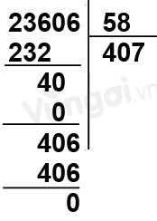Vậy : \(23606 : 58 = 407.\)