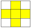 Quan sát hình vẽ ta thấy có tất cả $9$ ô vuông, trong đó có $5$ ô vuông được tô màu.