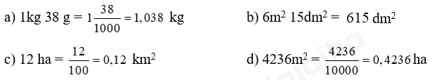 1kg = 1000 g ; 1m 2 = 100 dm 2