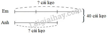 Câu 6. Mẹ cho hai anh em 40 cái kẹo. Số kẹo của em gấp rưỡi số kẹo của anh. Hỏi mẹ cho mỗi người bao nhiêu cái kẹo?