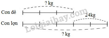 Con lợn nặng hơn con dê 24kg. Biết \(\dfrac{1}{3}\) con dê nặng bằng \(\dfrac{1}{5}\) con lợn. Hỏi cả hai con nặng bao nhiêu ki-lô-gam?