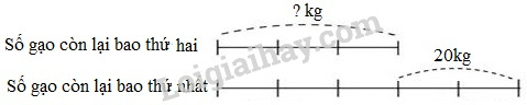 - Ta tìm số gạo còn lại của mỗi bao theo dạng toán tìm hai số khi biết hiệu và tỉ số của hai số đó.