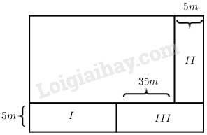 Hình III có chiều rộng là \(5m\), chiều dài là \(35 + 5 = 40 \;(m)\).