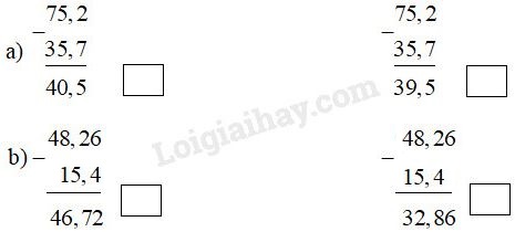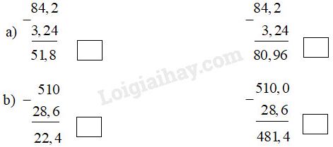 Chú ý: Nếu số chữ số ở phần thập phân của số bị trừ ít hơn số chữ số ở phần thập phân của số trừ, thì ta có thể viết thêm một số thích hợp chữ số \(0\) vào bên phải phần thập phân của số bị trừ, rồi trừ như trừ các số tự nhiên.