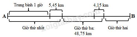 Câu 7. Một ô tô đi từ A đến B hết 3 giờ. Giờ thứ nhất đi nhiều hơn mức trung bình của cả 3 giờ là 5,45km. Giờ thứ hai đi ít hơn mức trung bình của cả 3 giờ là 4,15km. Giờ thứ ba đi được 48,75km. Hỏi quãng đường AB dài bao nhiêu ki-lô-mét?