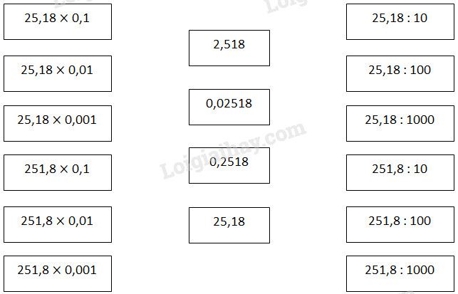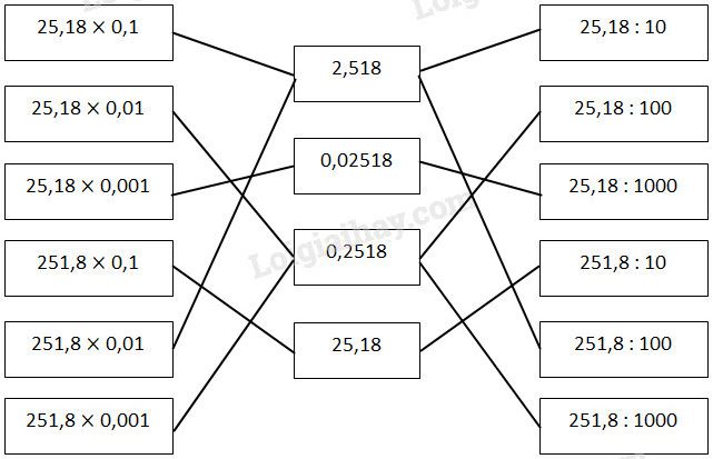 - Khi nhân một số thập phân với \(0,1;\; 0,01;\; 0,001;\; ...\) ta chỉ việc chuyển dấu phẩy của số đó lần lượt sang bên trái một, hai, ba, ... chữ số.
