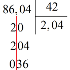 A. \(86,04:42 = 2,4\) (dư 36) ☐