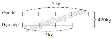 - Tìm số gạo mỗi loại bán được theo dạng toán tìm hai số khi biết tổng và tỉ số của hai số đó.