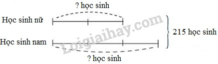 Khối lớp 5 trường Đoàn Kết có 215 học sinh. Số học sinh nữ bằng \(\dfrac{2}{3}\) số học sinh nam. Hỏi khối lớp 5 của trường Đoàn Kết có bao nhiêu học sinh nam, bao nhiêu học sinh nữ ?