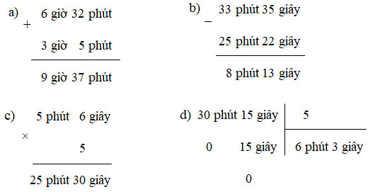 a) 6 giờ 32 phút + 3 giờ 5 phút