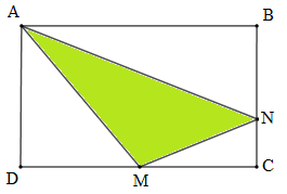 Diện tích tam giác $AMN$ bằng diện tích hình chữ nhật $ABCD$ trừ đi tổng diện tích ba tam giác vuông \(ABN,MNC,ADM\).