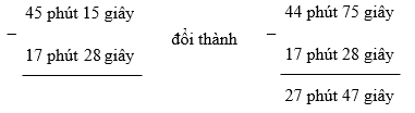 \(45\) phút \(15\) giây \( - \,17\) phút \(28\) giây \( = \)