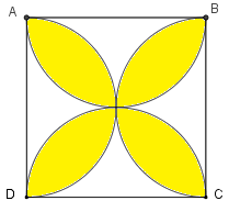Tính diện tích bông hoa được tô màu trong hình vẽ sau, biết hình vuông \(ABCD\) có độ dài cạnh là \(6cm\).