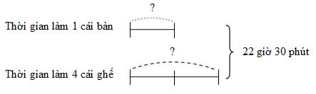 Bác thợ mộc làm một bộ bàn ghế gồm \(1\) cái bàn và \(4\) cái ghế hết \(22\) giờ \(30\) phút.