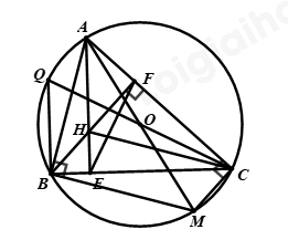 Cho tam giác ABC nhọn nội tiếp đường tròn O. Các đường cao AE, BF cắt nhau tại trực tâm H của tam giác, AO cắt đường tròn tại điểm thứ hai M.