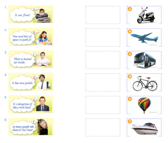 (Những học sinh đang nghĩ về những phương tiện giao thông. Em có thể nối những học sinh với phương tiện không?)