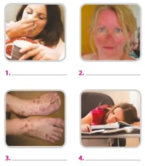 (Nhìn vào hình. Viết ra vấn đề bên dưới hình của mỗi bệnh nhân.)