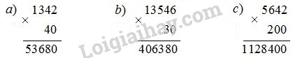\(a) \;1342 × 40;\) \(b)\; 13546 × 30;\) \(c)\; 5642 × 200.\)