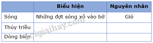 Phân biệt ba dạng vận động của nước biển và đại dương bằng cách hoàn thành bảng theo mẫu dưới đây:
