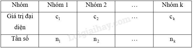 Ta hiệu chỉnh lại bảng số liệu bao gồm giá trị đại diện:
