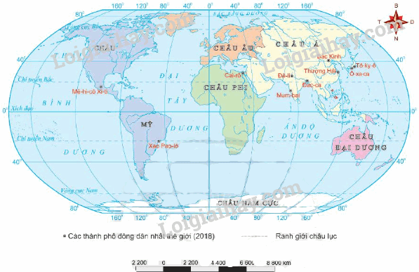 Hình 22.3. Một số thành phố đông dân nhất thế giới năm 2018