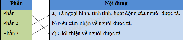 (Nối tên mỗi phần của bài văn ở cột A với nội dung tương ứng ở cột B trong phiếu bài tập để trả lời)