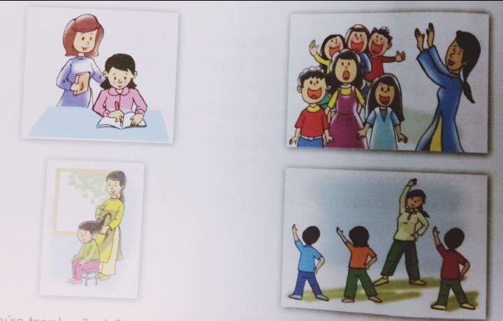 - Tranh 1: Cô giáo dạy học sinh học bài