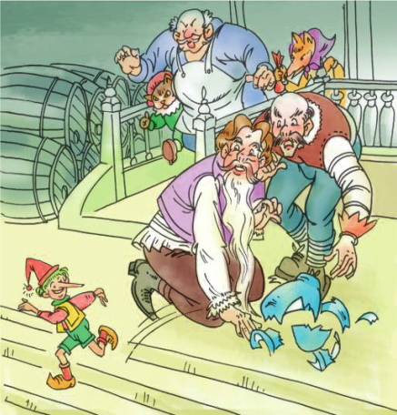 - Những người trong tranh đang đuổi bắt Bu-ra-ti-nô.