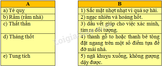 Chọn lời giải nghĩa ở cột B phù hợp với từ ngữ ở cột A