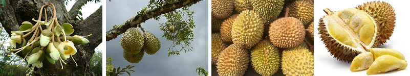 Hoa sầu riêng trổ vào cuối năm. Gió đưa hương thơm ngát như hương cau, hương bưởi tỏa khắp khu vườn. Hoa đậu từng chùm, màu trắng ngà. Cánh hoa nhỏ như vảy cá, hao hao giống cánh sen con, lác đác vài nhụy, li ti giữa những cánh hoa. Mỗi cuống hoa ra một trái. Nhìn trái sầu riêng lủng lẳng dưới cành trông giống những tổ kiến. Mùa trái rộ vào tháng tư, tháng năm ta.