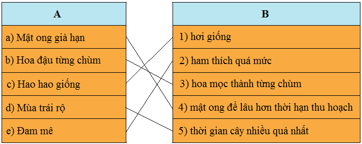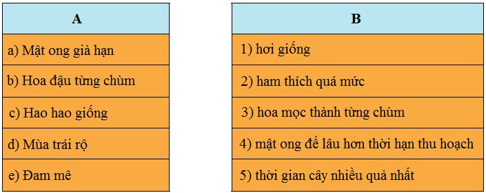 Chọn lời giải nghĩa ở cột B phù hợp với lời từ ngữ ở cột A.