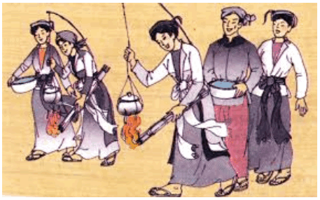 Hội thổi cơm thi ở làng Đồng Vân / bắt nguồn từ các cuộc trẩy quân đánh giặc của người Việt cổ / bên bờ sông Đáy. //