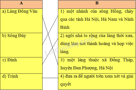 Chọn lời giải nghĩa ở cột B phù hợp với từ ngữ ở cột A
