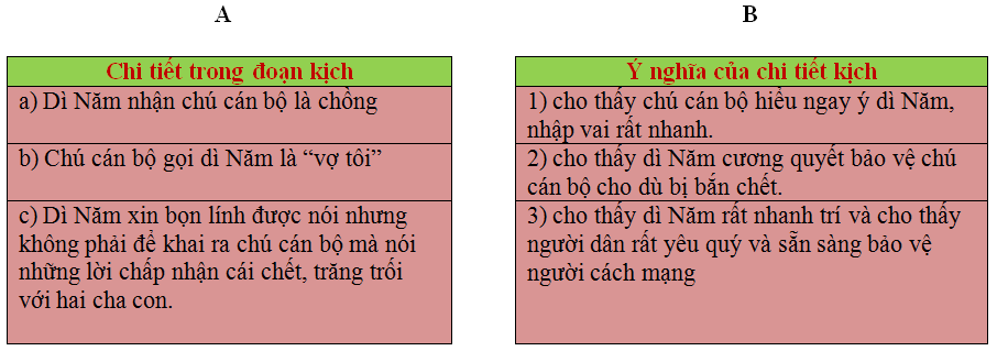 b – 1: Chú cán bộ gọi dì Năm là “vợ tôi” - cho thấy chú cán bộ hiểu ngay ý dì Năm, nhập vai rất nhanh.