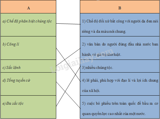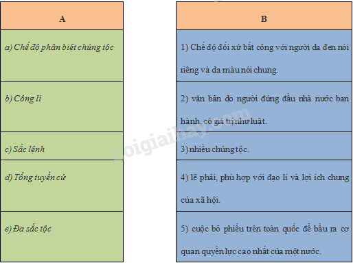 Chọn lời giải nghĩa ở cột B phù hợp với từ ngữ ở cột A